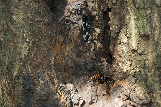 【左】コナラの樹液を吸うオオスズメバチ 【中】トックリバチの巣 【右】イセノナミマイマイ