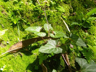 【左】雑木林の中へ 【中】キノコ探し 【右】