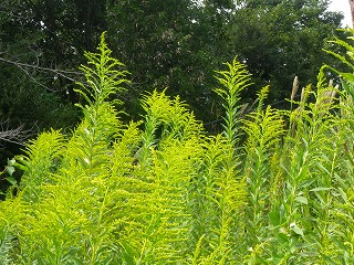 【左】ヒガンバナ咲く谷間 【中】セイタカアワダチソウ開花 【右】ヒヨドリバナ開花