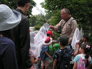 余談ですがこの観察会の公報の行事名は「夏の昆虫とオオケマイマイを見よう」です。「オオケマイマイ」同様「昆虫」も観察対象です。 (記 平松俊)
