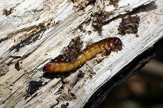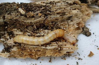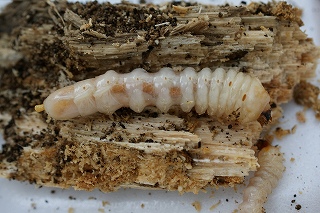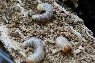 【左】キマワリの幼虫   【中】クワガタムシの幼虫   【右】カミキリムシの幼虫