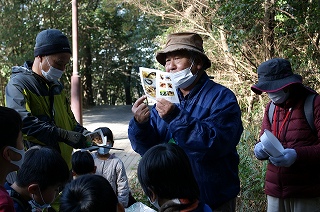 その後、任坊山の森の中で朽ち木の中で越冬している虫たちを探しました。一番多く出たのはコガタスズメバチの女王バチ。幼虫はキマワリ、コクワガタ、カミキリムシ、ユミアシゴミムシダマシ。その他、ヒゲジロハサミムシ、トビズムカデ、ジムカデ、ダンゴムシなどたくさんの虫たちに出会えました。(記:牧野)