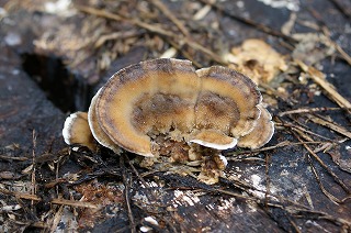 【左】コフキサルノコシカケ 【中】マツカサキノコモドキ? 【右】ハナガサイグチ?
