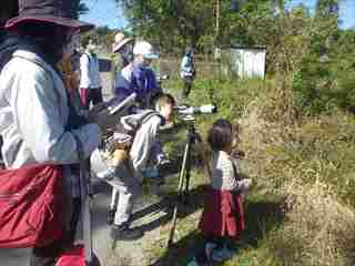 子供たちはガガイモの冠毛を風に飛ばして遊んだり、ハラビロカマキリを捕まえて肩にのせて楽しんだりしていました。林の中ではメジロが賑やかにさえずり、空にはミサゴやヒバリが飛び、田ではエサを探すアオサギが観察できました。