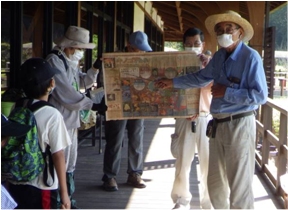 梅の館の館長から、はじめの挨拶があり、その後、降幡さんより「キノコ」についての図解説明をされた。キノコを理解して、興味わかせて観察に出かける。
