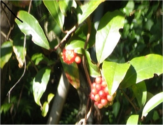 イヌビワ、クロガネモチ、アケビ、アマゾントチカガミ、センリョウ、サザンカ、サネカズラ、ノコンギク