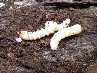 【左】コガタスズメバチ 【中】キマワリ幼虫 【右】カミキリムシの幼虫