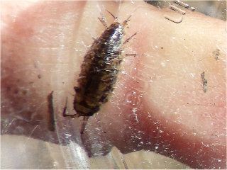 【左・右】ニホンヒメフナムシ。初めて見る生きもの。指導員の図鑑で判断した