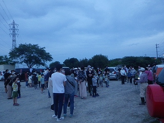 受付準備ができた18時30分ごろから参加者が来場。みるみるうちに駐車場が満杯に。たまたま7月の新川観察会用に借りておいた隣接する別の駐車場へ10数台を案内し、事無きを得ました。本日の参加者は何と104名。今までにない大人数でした。