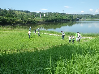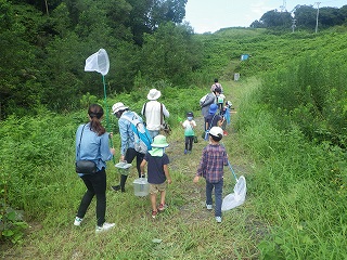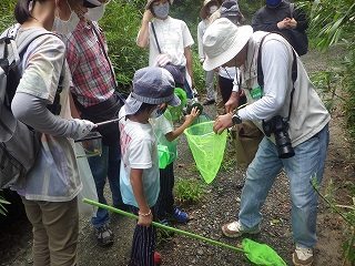 子供たちはトンボやチョウ、バッタなどを追って元気いっぱい。ナンバンキセル、クズ、ゴンズイの花、コナラ、サルトリイバラの実など、秋をいっぱい感じました。