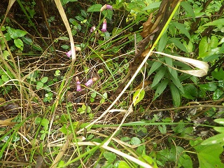 【左】ナンバンギセルの生育場所付近 【右】ナンバンギセル。今回は本数が多かった