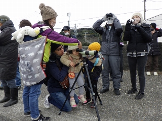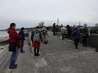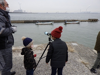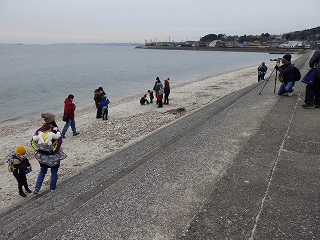 寒風が吹く中であったが、子どもたちが砂浜で珍しい貝を見つけては歓声を上げたり、親が子どもに鳥の説明をしたりと、賑やかな観察会となりました。
