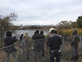 カワウ、マガモ、コガモ、ミコアイサ、カイツブリ、オオバン、ミサゴ(2羽)、トビ、オオタカ、ノスリ、カシラダカ、ハシボソガラス、スズメ、ヒヨドリ、ツグミ、メジロ、モズ、タヒバリ、ホウジロ、ジョウビタキ、アオジ、シジュウカラ、カワラヒワ、ハクセキレイ、コゲラ