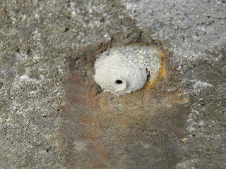 【左】排水溝に作られたツチバチ類の巣   【中】キイチゴの仲間、紅葉   【右】マダケに取りついた菌類