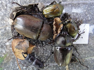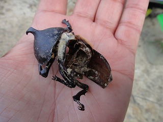 【左】カブトムシ♂ 【中】同左♂ 遺骸 【右】同左♀ 遺骸
