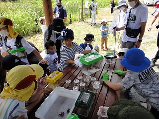 【左】分かち合い 【右】虫篭の中、自慢の甲虫たち