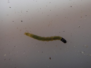 【左】ミノムシ (ミノガの幼虫) 【中】シャクガの幼虫 (尺取り虫) 【右】