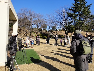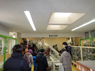 【左】一般参加応募者数19名、主催者挨拶 【右】動植物資料館巡回