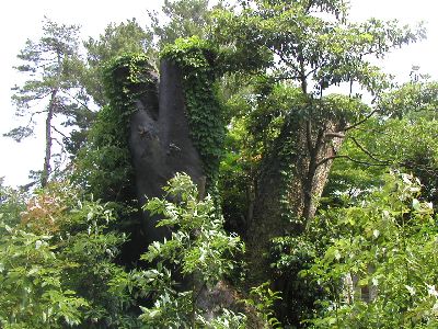 【右】国指定の天然記念物の9本ダモ(タブノキ)ですが最近、枯れたみたいで残念です。