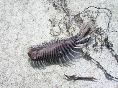 【右】ゴカイの仲間のウミケムシです。素手で触ると毛に毒があり痛みます。