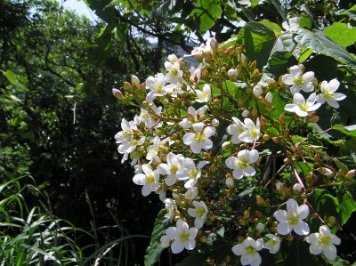 【左】アブラギリの花です。中国から来た植物で、この実から油をとります。