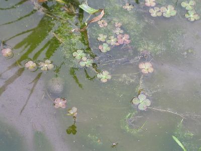 【左】シダの仲間で水生植物のデンジソウです。愛知県では絶滅に近いです。