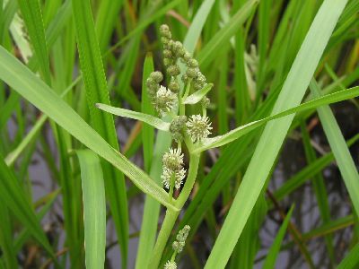【左】ミクリ科のミクリです。ミクリは実栗からの名前で、栗のイガに似たところからだそうです。