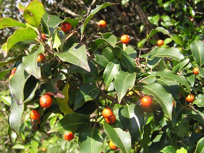 【左】ソヨゴ。園芸やさんはフクラシバ。