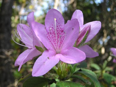 【左】モチツツジ(知多少ない)。狂い咲き。