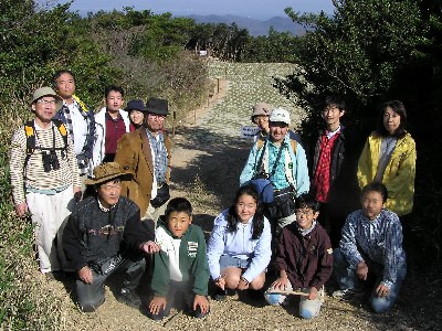 【右】大山のヘリ訓練用地の前で記念写真。自然がいっぱいの山です。