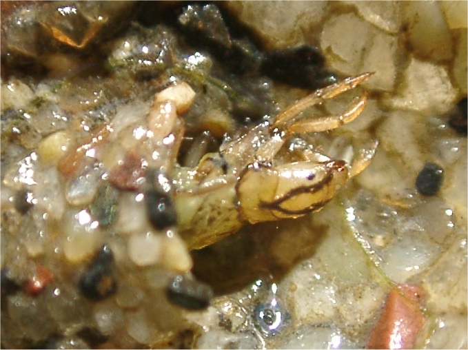 【右】このように全く何もいないような所によく見ると、何匹でもいるのでした。すごいカモフラージュ! 最初の発見者は写真上の男性でした。
