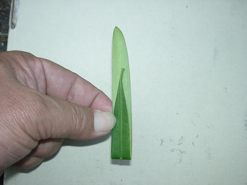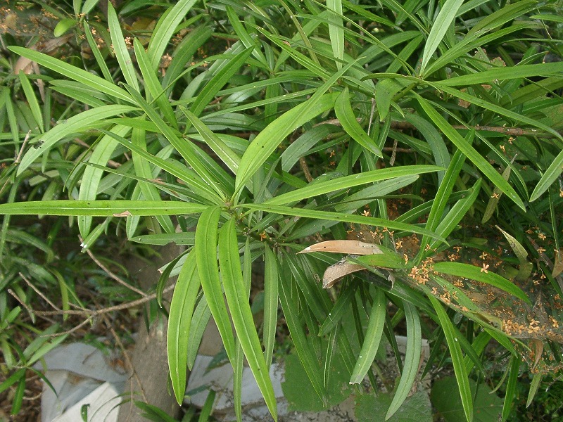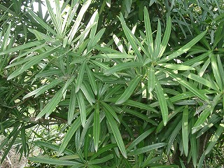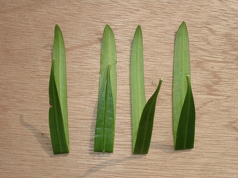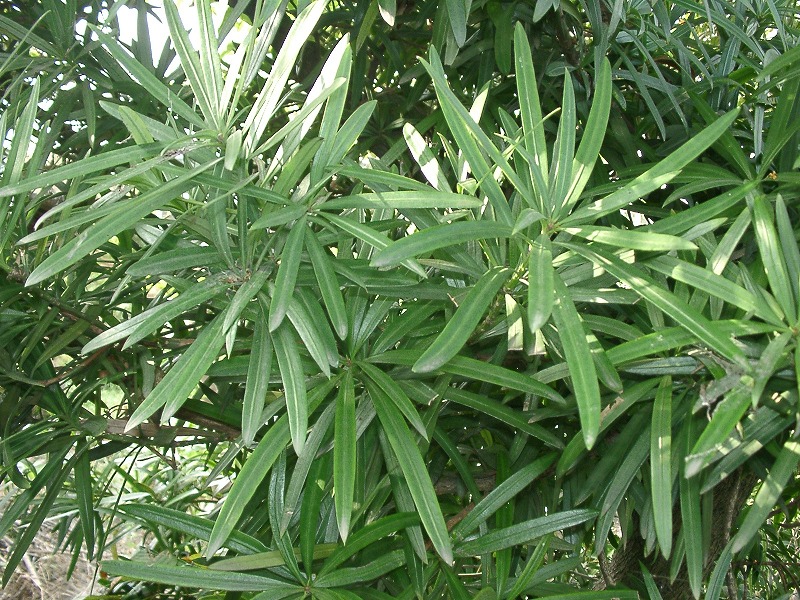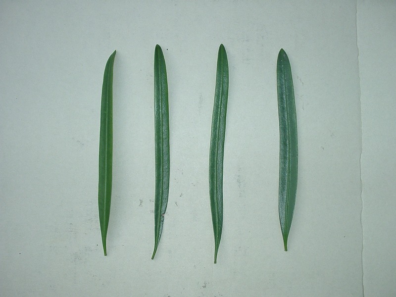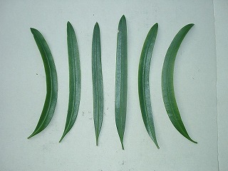 イヌマキの葉をとってみると、まっすぐな葉は少ないです