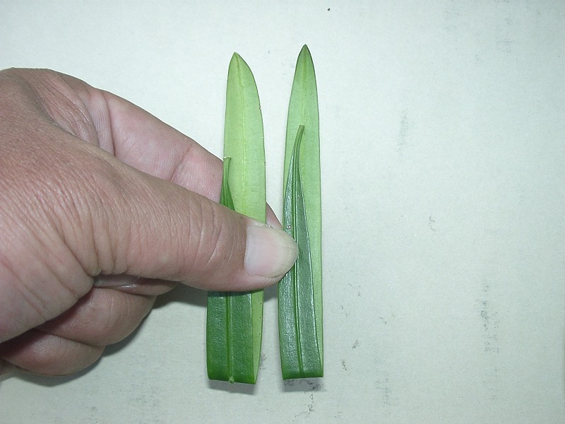 2枚目の葉で1枚目の葉をはさみます