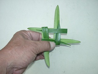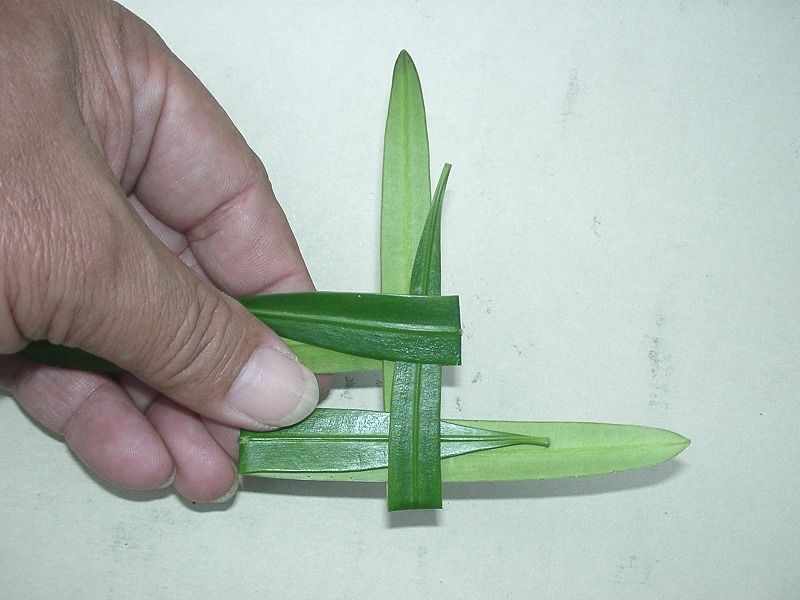 このとき、4枚目の葉のさきっぽを1枚目の間に入れます