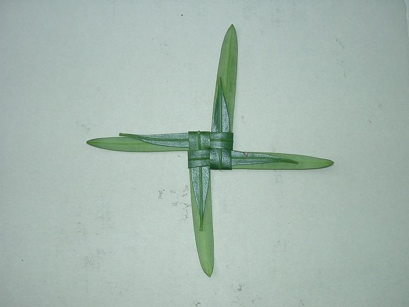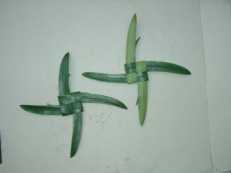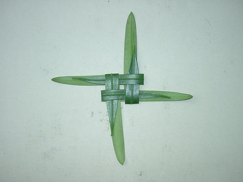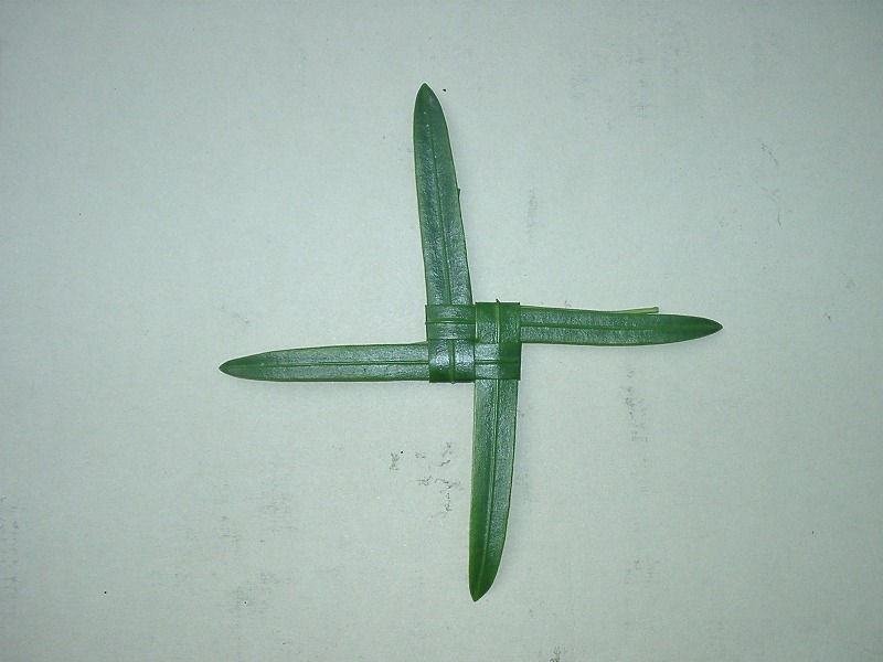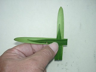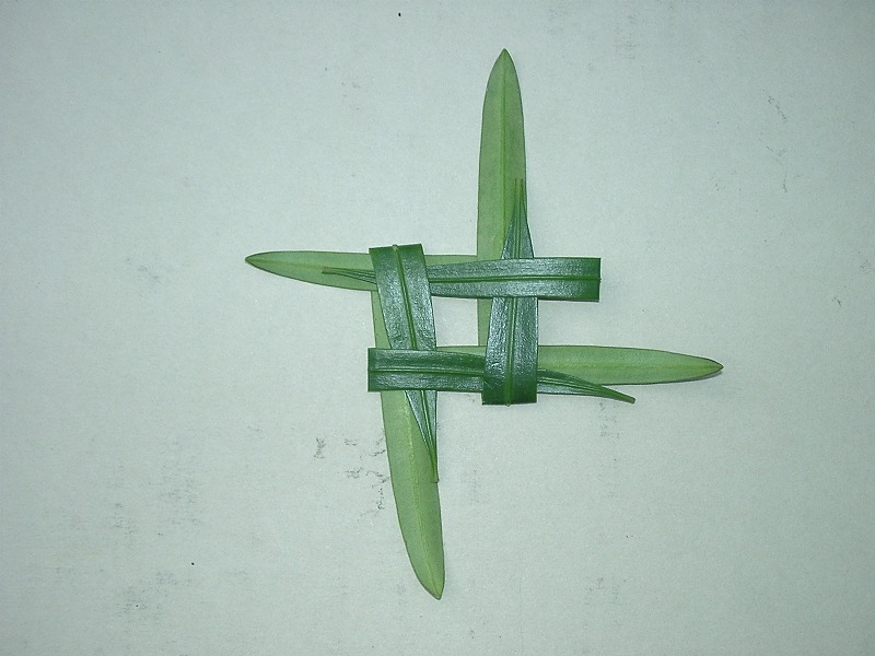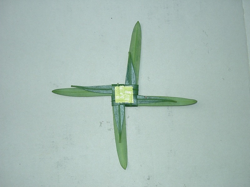 4枚の葉を写真のように折って長さをそろえます
