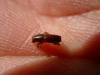 【左】穴の直径は2〜3mm 【右】穴にいた昆虫(これがカシナガ)