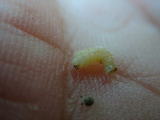 【左】これ、ひょっとして、カシナガの幼虫???