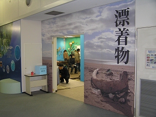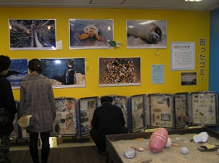 【左】漂着物展の様子  【右】漂着ゴミ等の展示