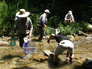 今回の行事は、010728に岐阜大学の位山演習林での灯火観察の思い出をもう一度の期待で計画をしました。灯火観察のみでしたら夕方、知多を出ればよいことですが、欲張りを出して、朝から出発し、途中で清流に住む生き物の観察をすることにしました。