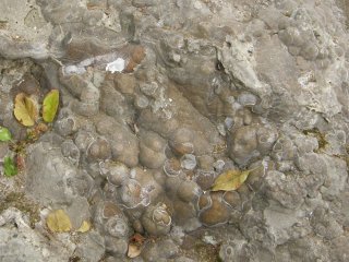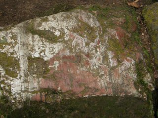 【右】竜のつめ跡 中央より右側 デイサイト自破砕溶岩(左側 同質凝灰角礫岩)。