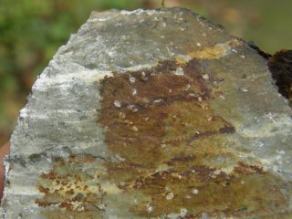 【左】珪化して白色化した安山岩(花垣鉱山)