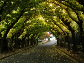 【右】鳳来寺高校の入り口(イチョウのトンネル)
