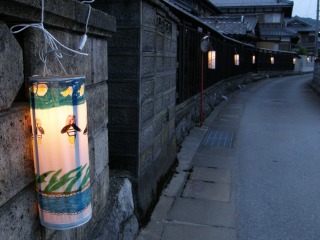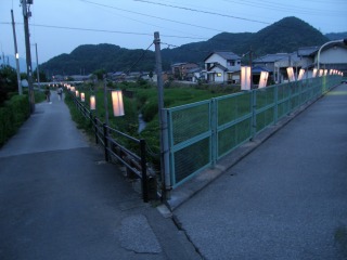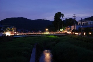 【左】夕闇迫るの天野川  【右】掛行灯に導かれて