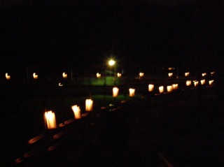 【左】名護か駅前は静でした。 【右】ぼんぼりがホタル発生地まで続きます。