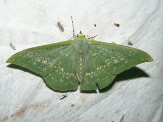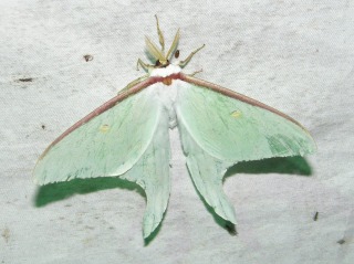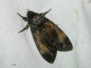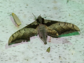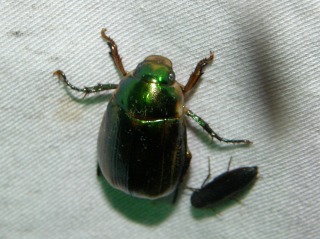 日本ではこれまでに約160種類の糞コガネが記録されています。糞コガネは糞を食べたり地中に埋めたりして地表から除去し、自然界の掃除屋として重要な役割を果たしています。昭和20年代知多半島は牛車が幅を利かし、田んぼや畑近くの路上にはたいてい牛糞が転がっていました。また畑のふちには人糞の入った肥溜めがあり、肥溜めを探せば簡単に糞コガネを見つけることができました。その後、車や浄化槽の普及により道路や畑から牛も人糞も消え、糞コガネもめったに見られなくなりました。しかし今でも牧場ならたくさんの糞コガネを見られるんじゃないか、山の牧場なら平地では見られない種類も見ることができるだろうと考え、旭高原(標高約600m)での灯火観察を実施しました。27日、参加者はわずか3名、大池公園から急遽現地集合に変更し、個々に車で旭高原に向かいました。途中偶然榊原さんと合流し15:20ごろ現地に到着しました。2人で灯火設置場所を決定し付近の観察を始めてまもなく降幡さんが到着、3人で栗林や散策コースを観察しました。夕食後、灯火装置を牧場内の牛舎横に設置し19:00過ぎに灯火観察を開始しました。糞コガネはなかなか現れずあせりましたが20:00ごろ最初の1匹が来て一安心、30分ほどの間に10匹以上やってきて以後ほとんど来なくなりました。代わりに大量のガが次から次にやってきました。メンガタスズメが来た時は全員興奮し、胸を押すとチイチイ音を出すので驚きました。大きなヘビトンボが来たのを最後に22:00ごろ灯火観察を終了しました。