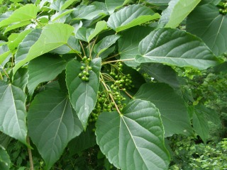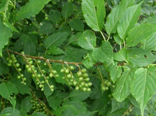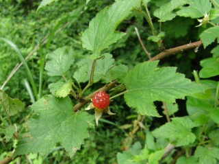 【左】サルナシの花、雌雄雑居性でしょうか。