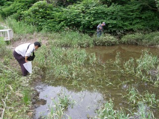 28日は5:00起床、朝食後湿地散策コースを観察し、9:00過ぎに観察会を完了しました。今回灯火に来た糞コガネはわずか2種類、期待はずれの結果に終わりました。時期や設置場所が悪かったのか、それとも牧場でも減ってしまったのでしょうか。今後、知多半島の牧場や段戸牧場など時期、場所をいろいろ変えて観察を続けていこうと思います。(記・平松俊)