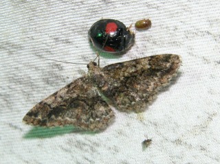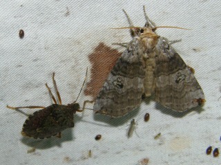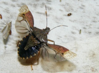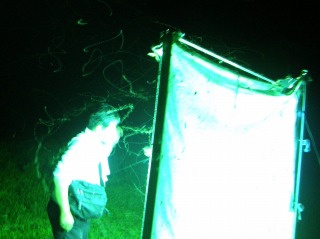 【左】たくさん飛翔してきました。  【右】おびただしい数が白布に付きました。