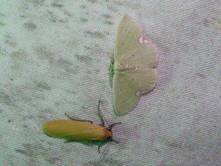 【左】ヨツモンマエジロアオシャク? 【右】ヒメホシカメムシ