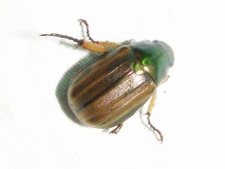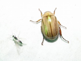 【右】スジコガネ(成虫は針葉樹の葉を食べます)